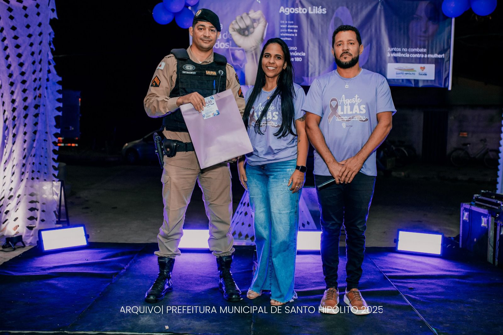 A noite da última sexta-feira (29) foi marcada por um importante momento de conscientização em Santo Hipólito. A Prefeitura Municipal realizou, na Praça João Velho, mais uma atividade da campanha Agosto Lilás, que tem como objetivo mobilizar a sociedade pelo fim da violência contra a mulher.
